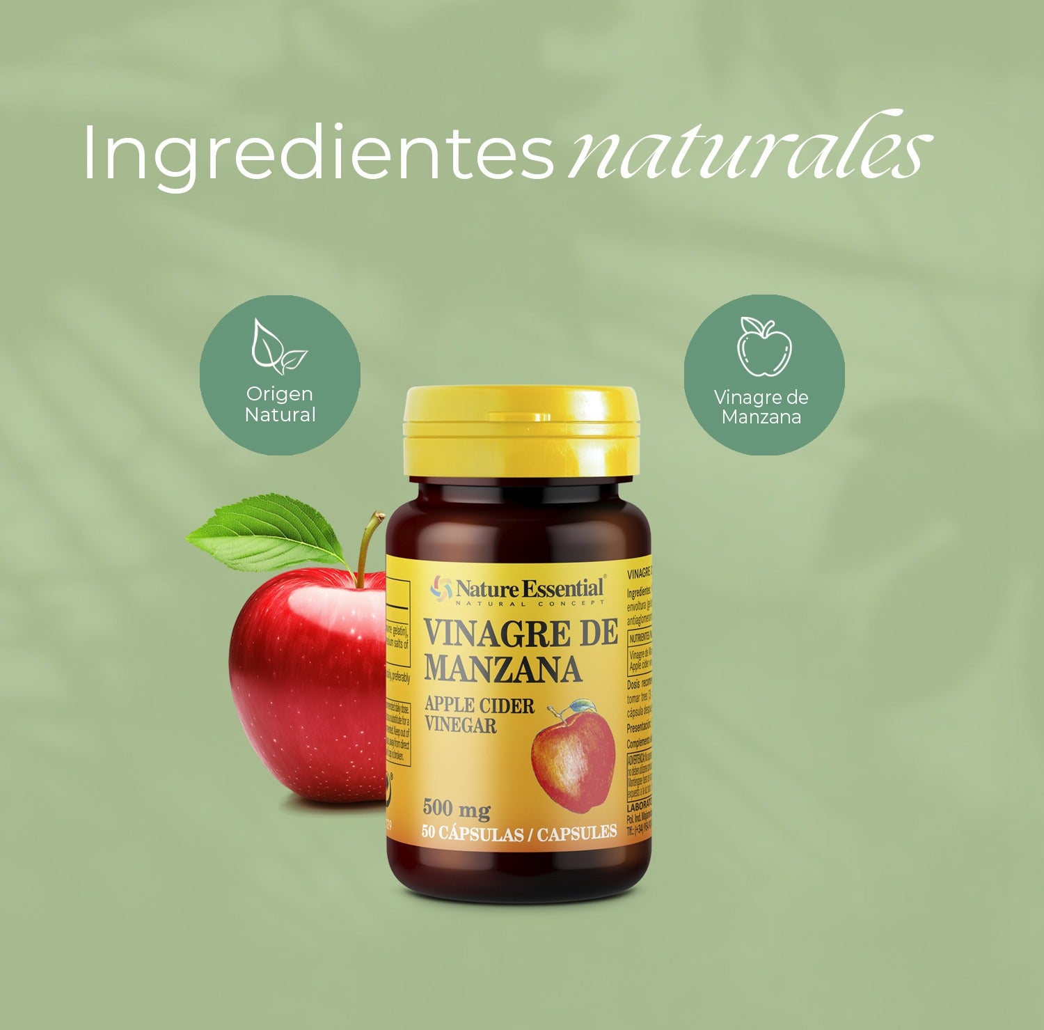 Vinagre de manzana 500 mg cápsulas de Nature Essential está formulado con Vinagre de Manzana que tiene propiedades que contribuyen a eliminar los tóxicos del organismo, regula el pH del organismo y baja los niveles de azúcar en sangre.
