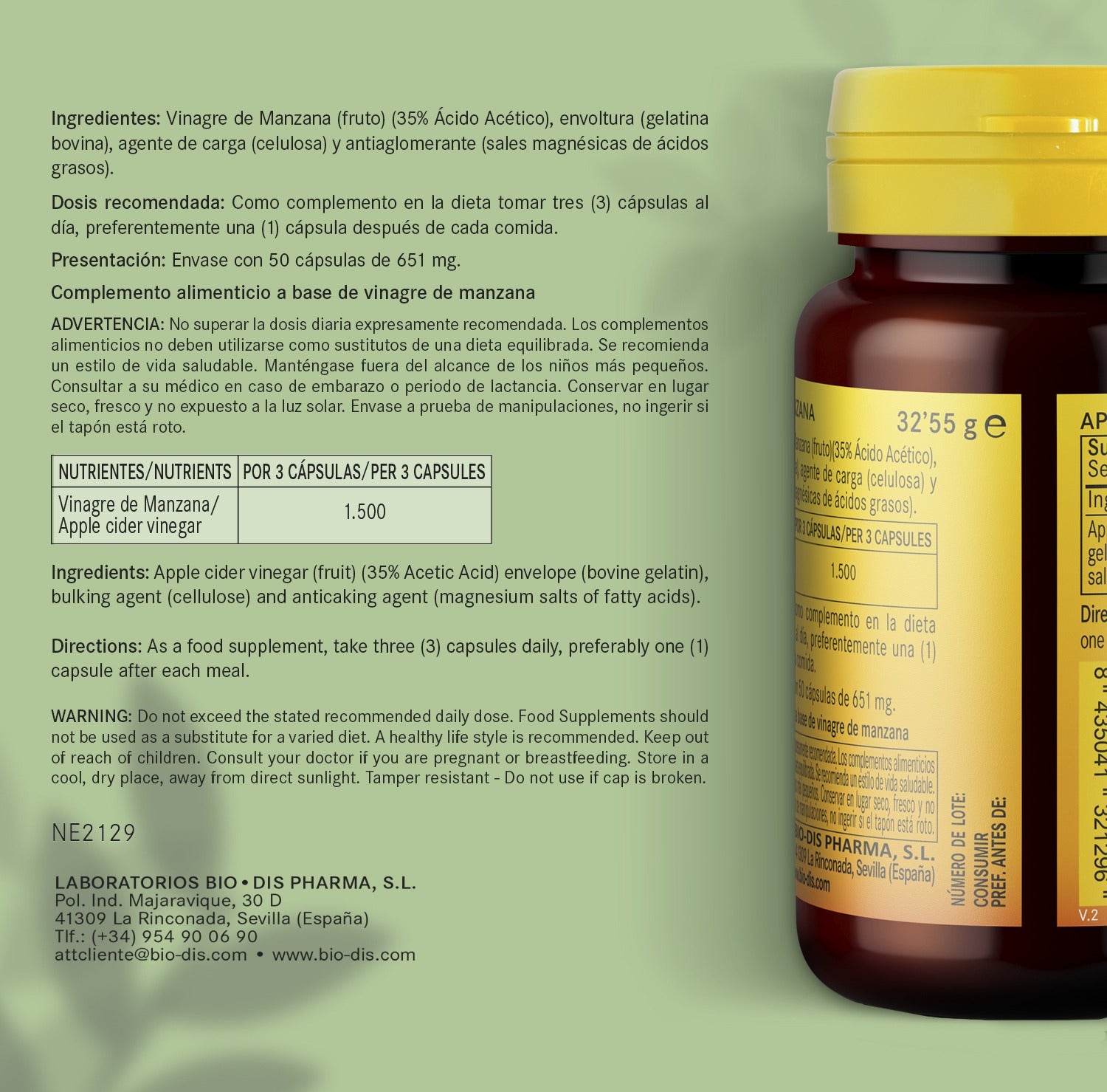 | Vinagre de Manzana (Malus domestica) | 500 mg | 35% | 175 mg Ácido Acético |